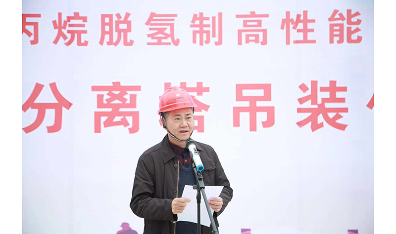 廣物控股集團林浩鈞總經(jīng)理、羅榮光副總經(jīng)理,巨正源股份曾一平董事長、王立貴總裁,東莞市、沙田鎮(zhèn)政府及市安監(jiān)局、港航局有關領導,項目設計、設備供應、現(xiàn)場施工、監(jiān)理單位領導代表,銀行金融單位領導代表,周邊企業(yè)嘉賓及公司員工近300人參加產(chǎn)品分離塔吊裝儀式,共同見證了丙烷脫氫項目建設大會戰(zhàn)取得的又一重大成果!