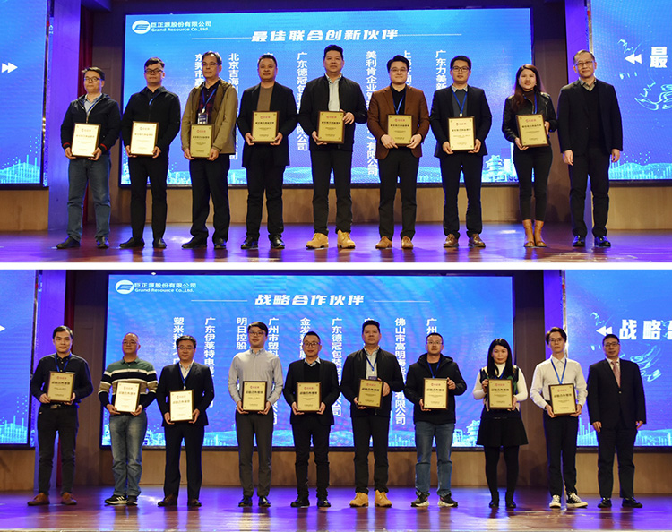 最后,大會(huì)向72家合作伙伴頒發(fā)年度戰(zhàn)略合作伙伴、優(yōu)秀客戶、最佳聯(lián)合創(chuàng)新伙伴等獎(jiǎng)項(xiàng)。廣物控股集團(tuán)領(lǐng)導(dǎo)、巨正源領(lǐng)導(dǎo)班子為獲獎(jiǎng)客戶頒發(fā)牌匾。