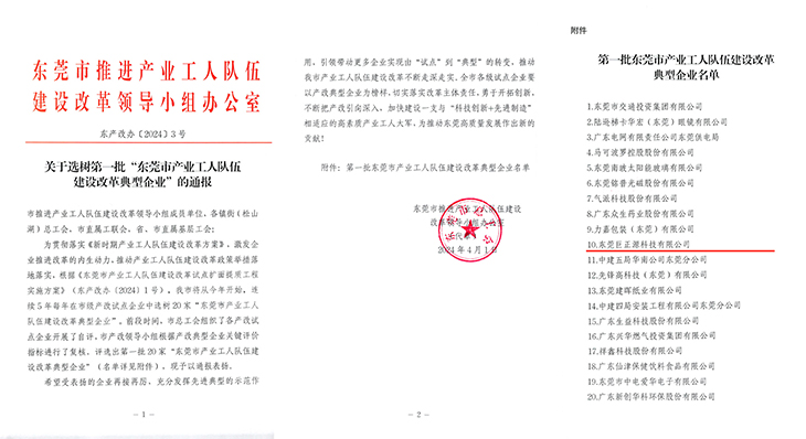 巨正源科技公司入選第一批“東莞市產(chǎn)業(yè)工人隊(duì)伍建設(shè)改革典型企業(yè)”